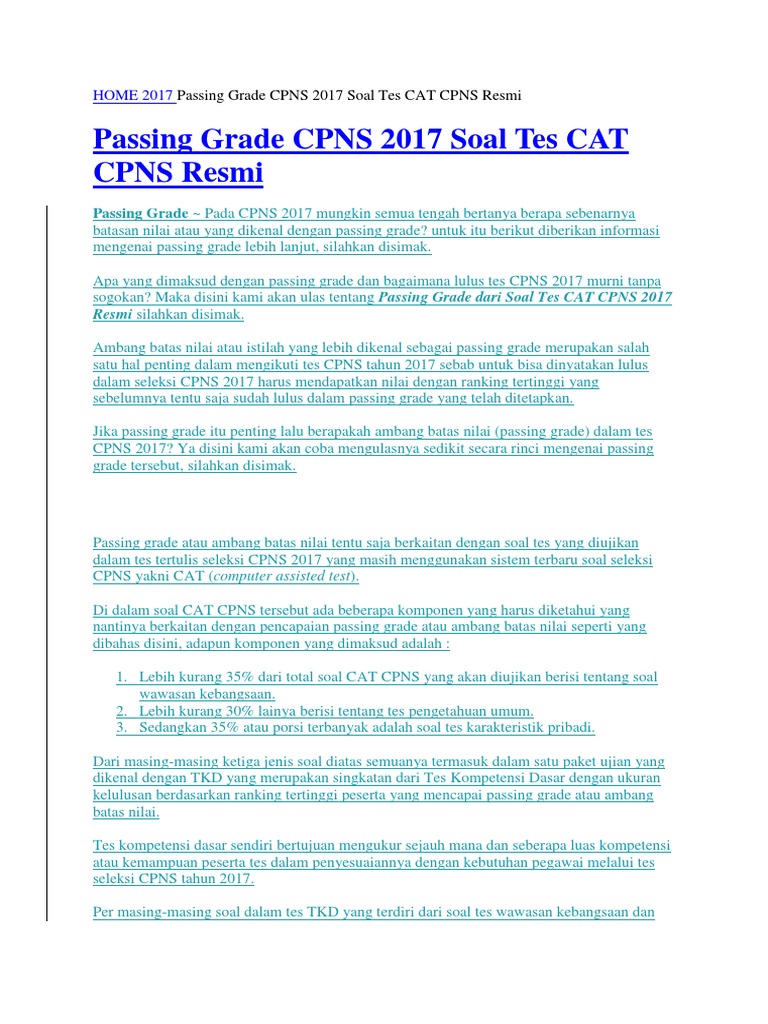 Simulasi cat cpns, soal cat cpns 2017, tes cpns sistem cat, tes cat cpns, cat tes cpns, test cat cpns, cat tkd cpns, tes cpns 2017 semoga aplikasi contoh soal cpns lengkap ini dapat memberikan manfaat bagi kita semua dan membuat kita diterima dan lolos seleksi untuk menjadi pegawai negeri. Simulasi cat cpns, soal cat cpns 2017, tes cpns sistem cat, tes cat cpns, cat tes cpns, test cat cpns, cat tkd cpns, tes cpns 2017 semoga aplikasi contoh soal cpns pertanian ini dapat memberikan manfaat bagi kita semua dan membuat kita diterima dan lolos seleksi untuk menjadi pegawai negeri. Rekrutmen calon pegawai negeri sipil atau cpns tahun 2017 ini mendasarkan pada sistem seleksi yang transparan dan akuntabel dengan mengadopsi teknologi berikut adalah tautan download contoh soal siap tes kompetensi dasar (tkd)/skd cpns: Pahami bentuk soal soal ujian cpns kemendikbud. Tkd cat terdiri dari tiga bagian materi tes yakni tes wawasan kebangsaan (twk), tes intelegensi umum (tiu) tes karakteristik pribadi (tkp) berarti, waktu pengerjaan untuk satu soal selama 54 detik.